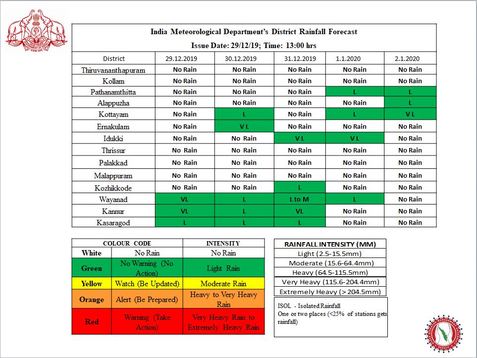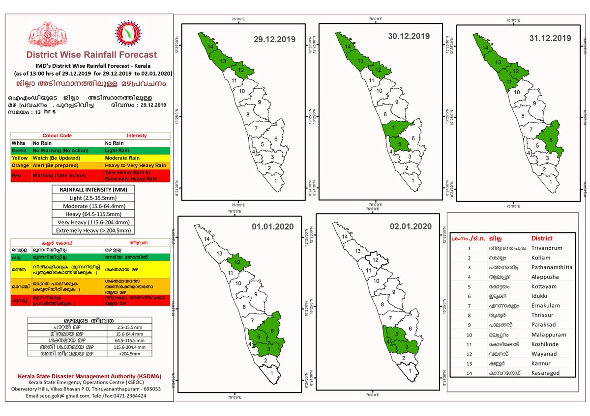 District Rainfall Forecast for Various Districts of Keralapic.twitter.com/UIGLBjsdC8