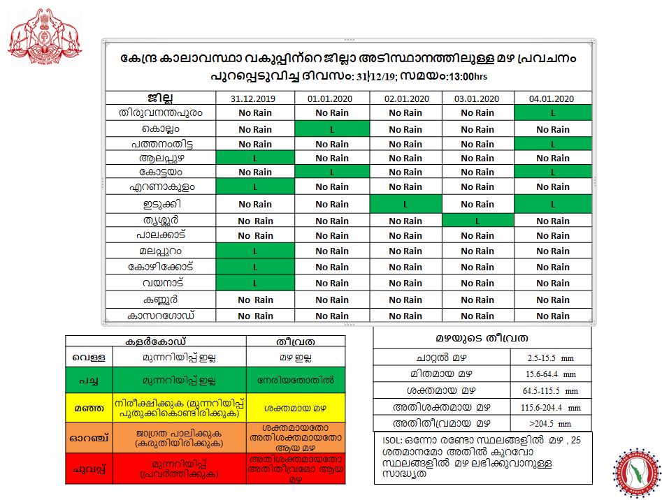 Kerala State Disaster Management Authority‏ @KeralaSDMA 31 Dec 2019