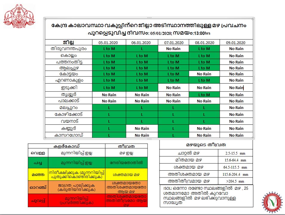 District wise Rainfall Forecast for various Districts of Keralapic.twitter.com/FKNapTctE5