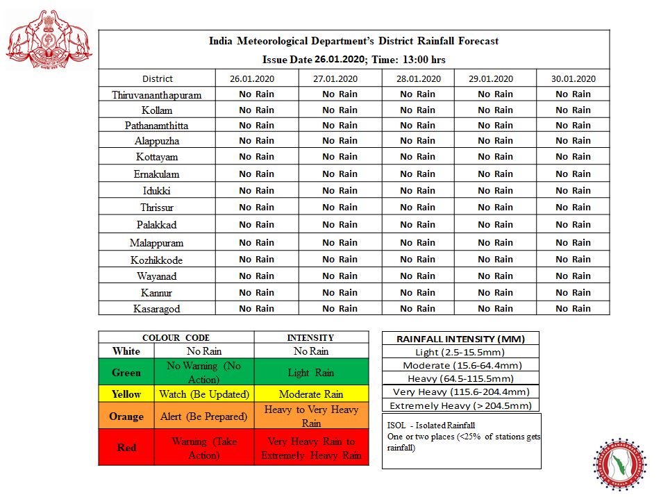 District Rainfall forecast for various Districts of Keralapic.twitter.com/mAaERfwdfk