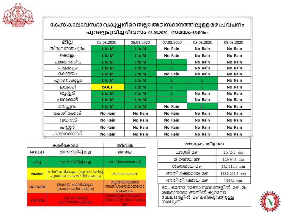 District Wise Rainfall Forecast For Various Districts Of Keralapic.twitter.com/Rzch2TVi6r