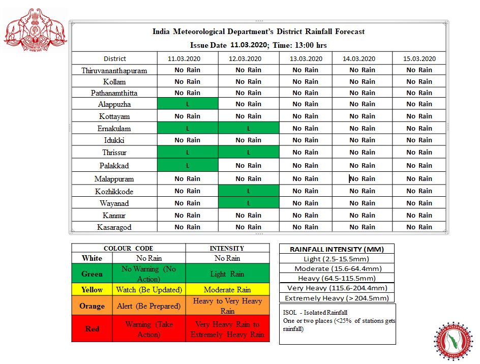 District Rainfall Forecast for various Districts of Keralapic.twitter.com/TlsjO5HLab
