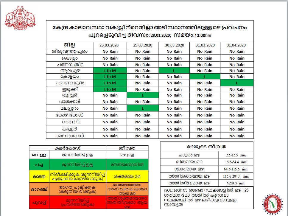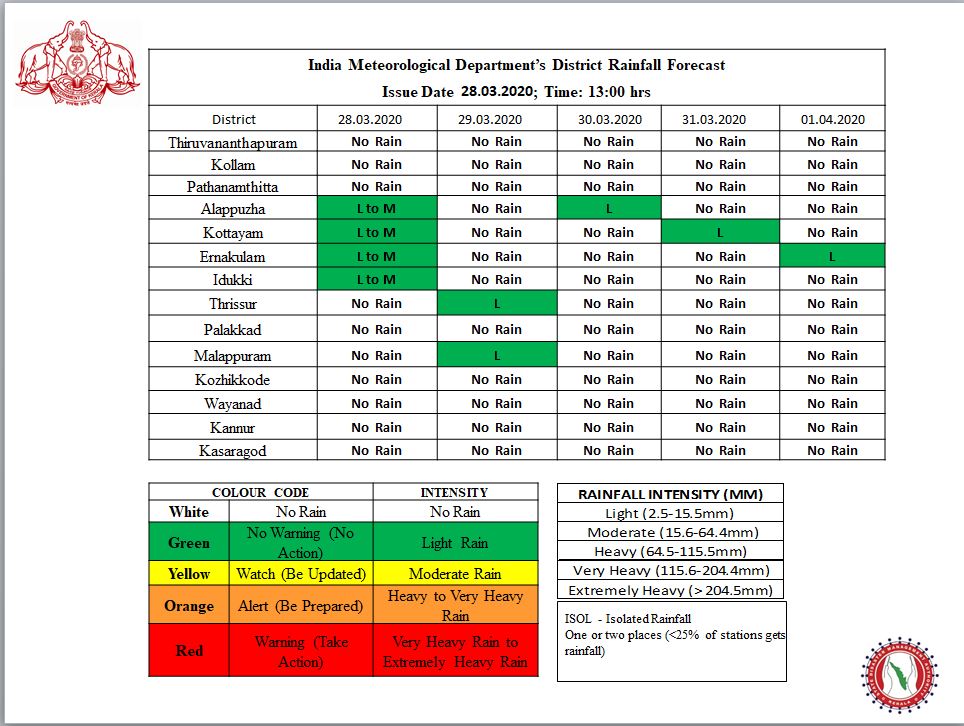 District Rainfall Forecast for Various Districts of Keralapic.twitter.com/qRwWjPNBso