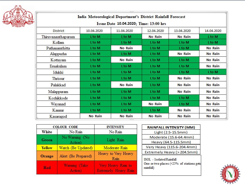 District Rainfall forecast for various Districts of Keralapic.twitter.com/COFCNYqhUA