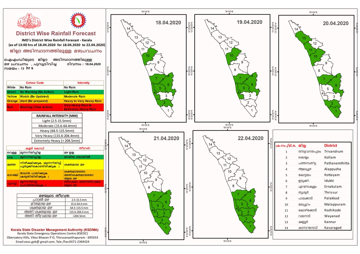 District Wise Rainfall Forecast for Various Districts of Keralapic.twitter.com/RvrCe1kJdK
