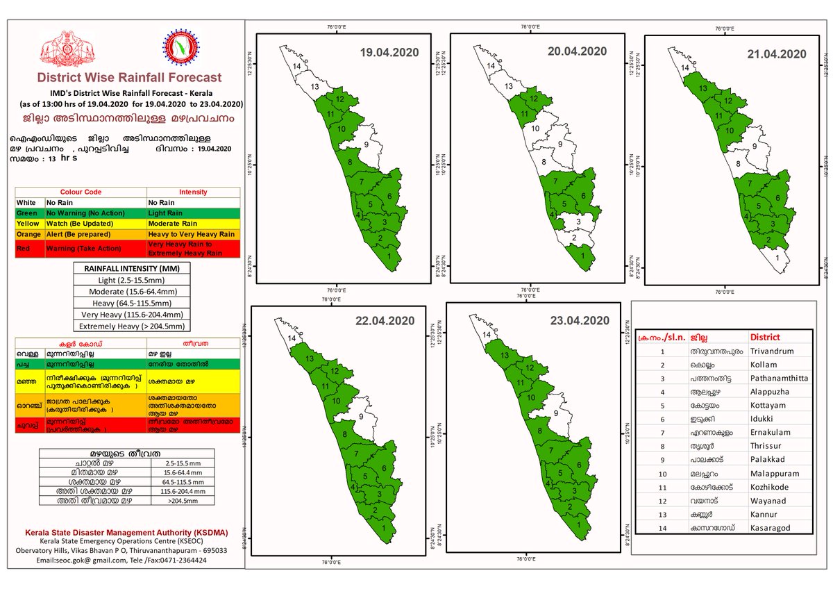 District Rainfall forecast for various Districts of Keralapic.twitter.com/theW2VhQuF