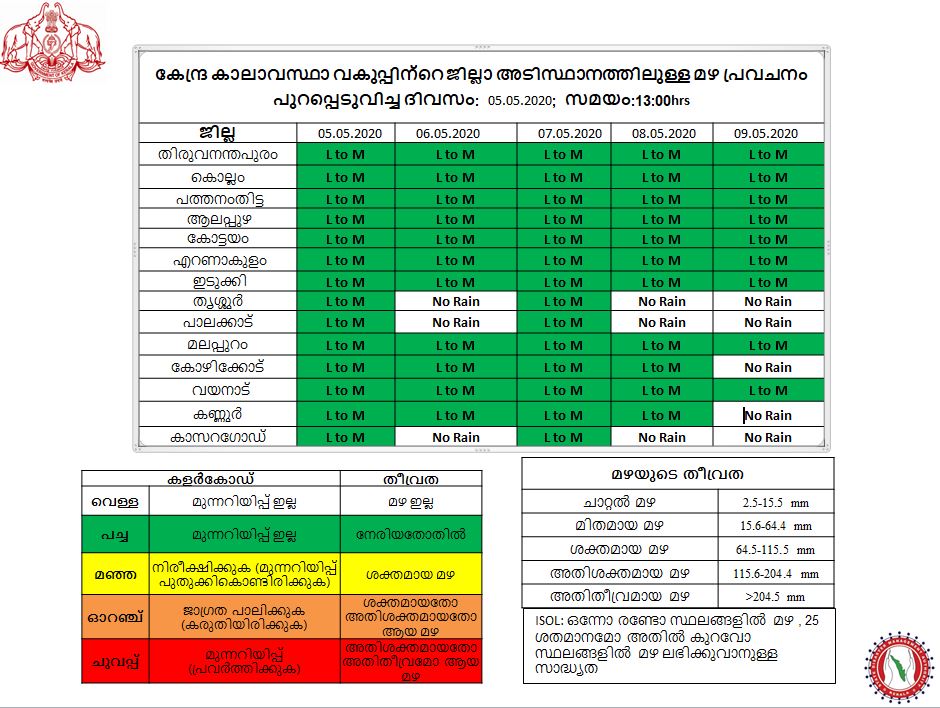 District Wise Rainfall Forecast For Various Districts Of Keralapic.twitter.com/6RYJzQq0ii