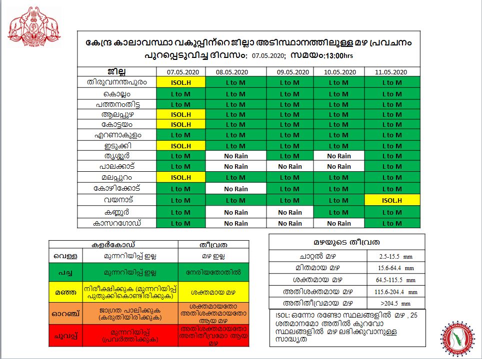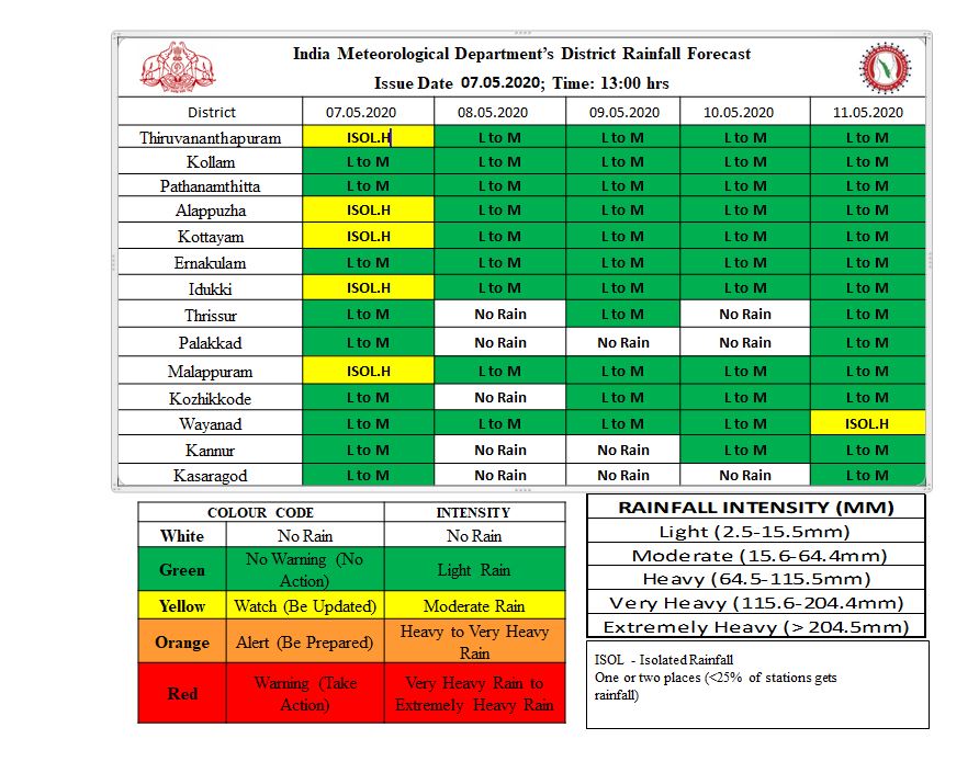 District Rainfall Forecast for Various Districts of Keralapic.twitter.com/qi8MJ31OKw