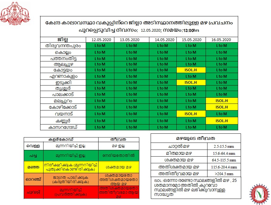 District Wise Rainfall Forecast For Various Districts Of Keralapic.twitter.com/kzeSOH6xcf