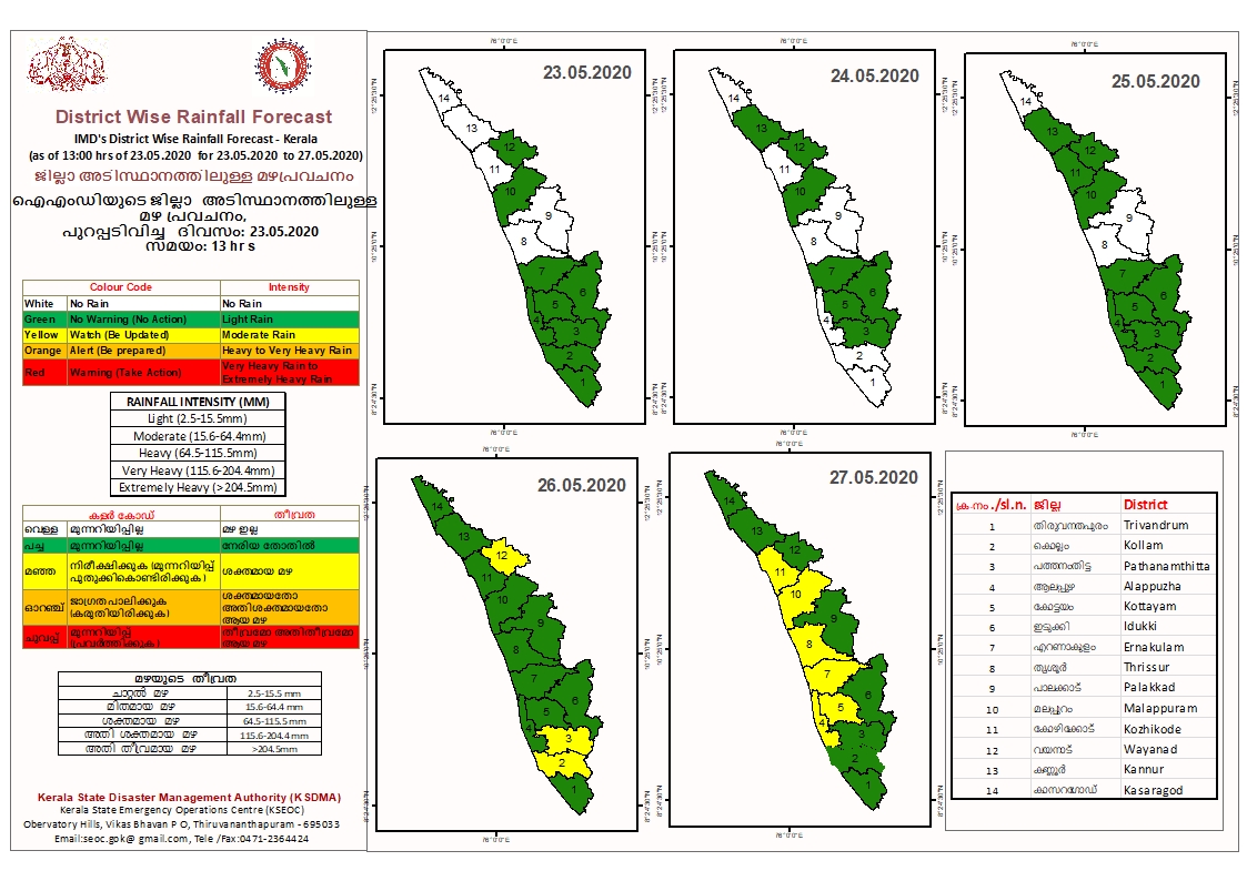 District Wise Rainfall Forecast For Various Districts Of Keralapic.twitter.com/hdJp6gk6GM