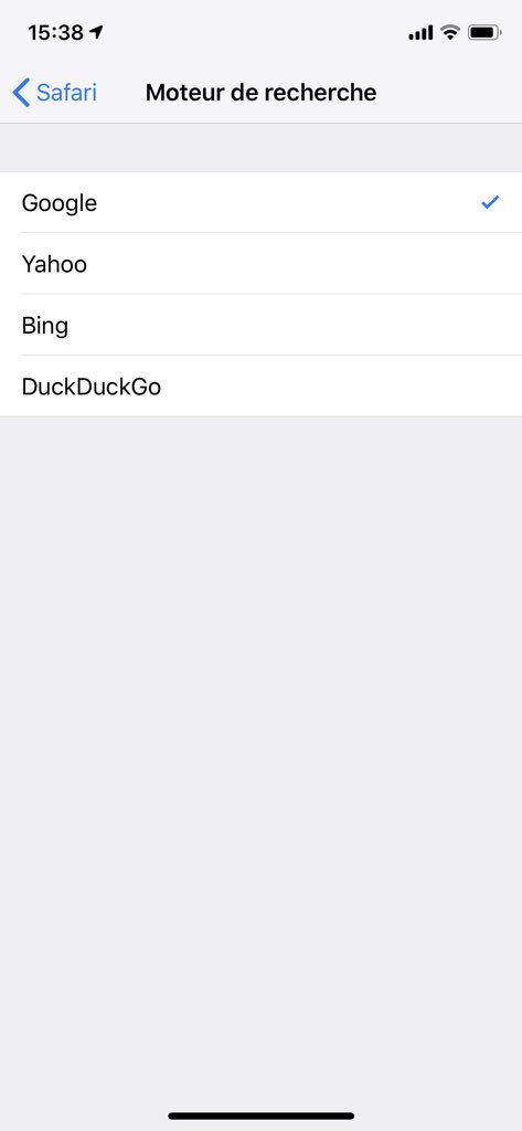 Je pense que le choix du moteur de recherc utilisé par siri ce fait dans Réglages -> Safari -> Moteur de recherche et ce résume à 4 choix.pic.twitter.com/VPQogmAb0V