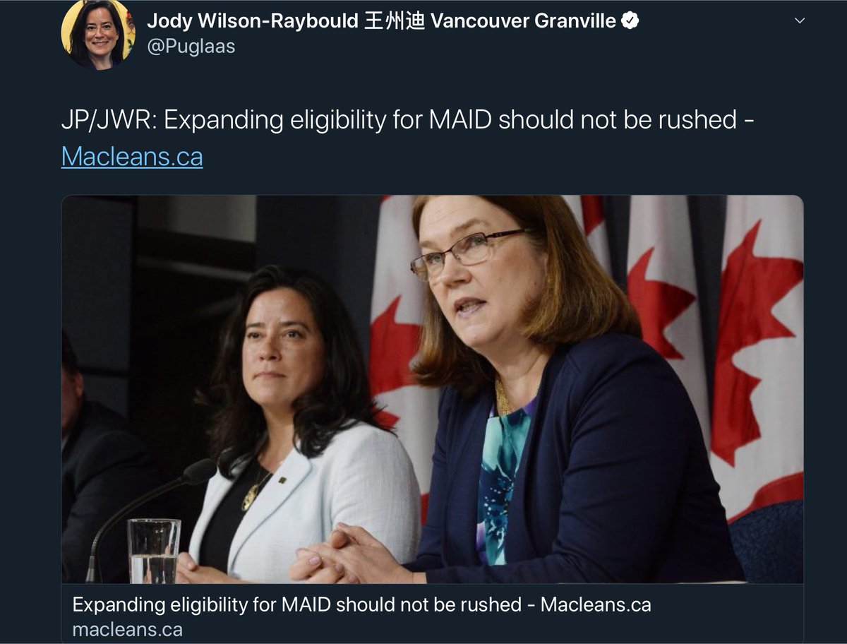 I have no interest in what these two disgraced people say now about the assisted death legislation they designed to be cruel. Canadians were let down.https://twitter.com/davidhamer_1951/status/1224448864595267584 …