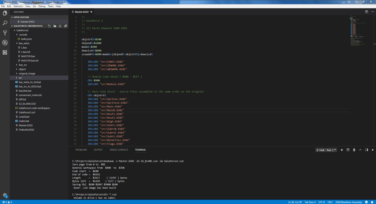 #BBCMicro Galaforce 2 source code ( in BBC Basic assember ) to build on a PC using Visual Studio Code + Beeb VSC. Assembly time is less than one second and deploys to any Beeb Emulator! If only I had this setup back in the#1980s!pic.twitter.com/eFHGUzy2uX