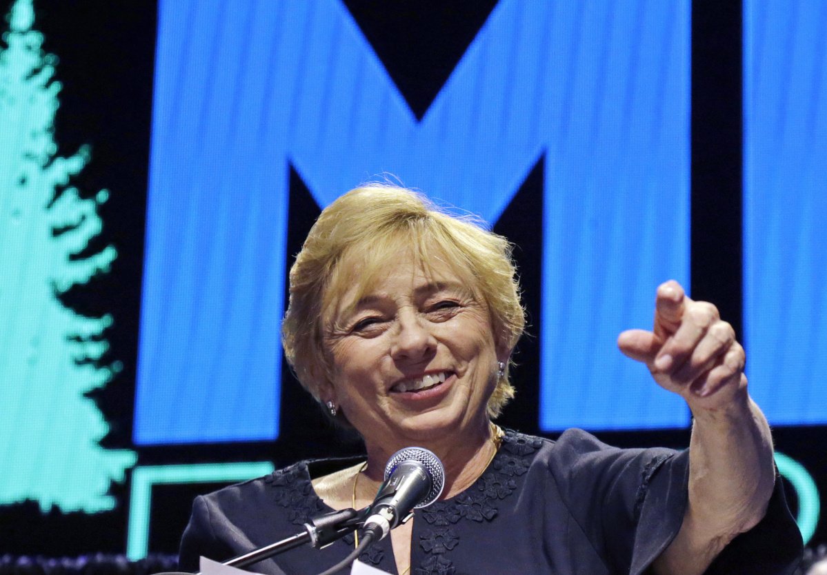 Mills taking the oath of office to become the 75th governor of Maine — and first woman to told the office. Standing ovation, hoots and hollers from the crowd.