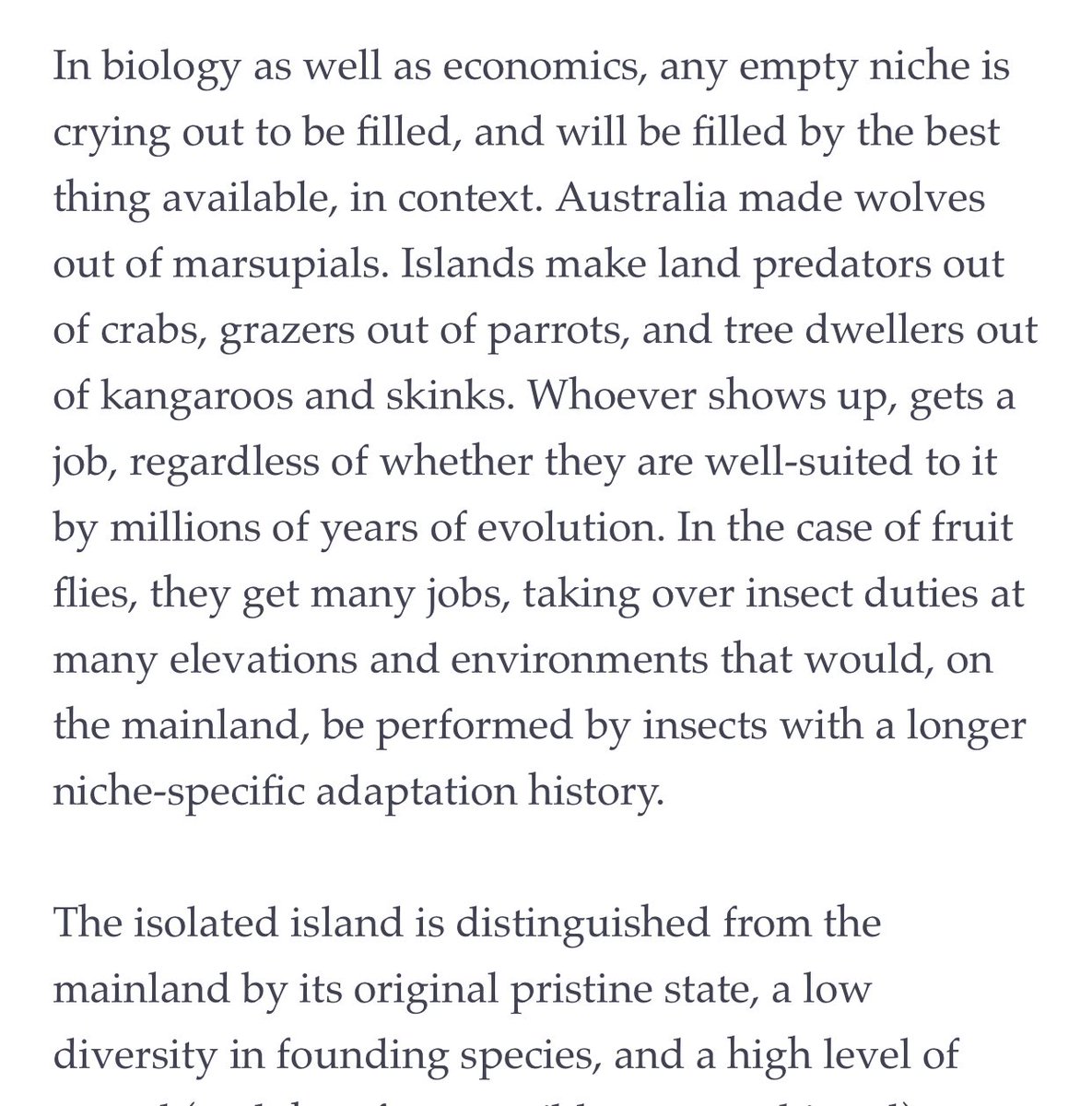 Love the analogy! I wonder how many parallels from island ecology make sense here. Insular gigantism and/or dwarfism? Or the attached (from https://www.ribbonfarm.com/2015/12/03/an-ecology-of-beauty-and-strong-drink/ …)pic.twitter.com/jPam9oGHnM