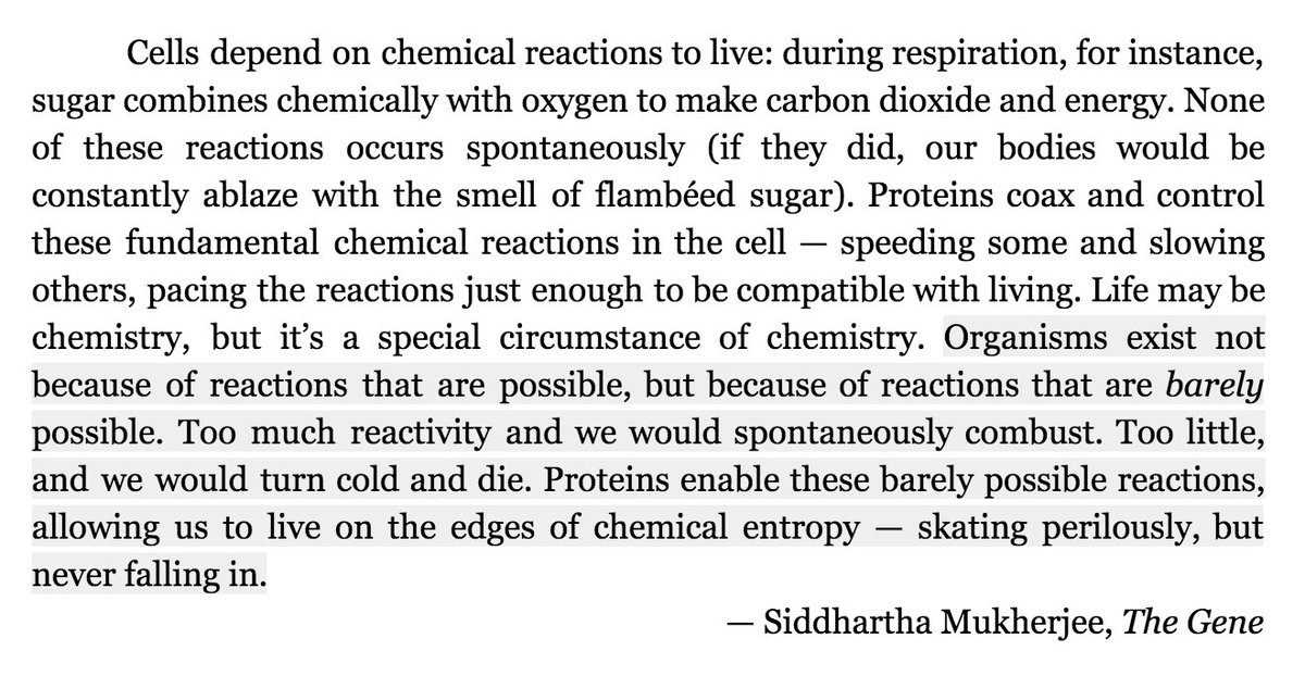 "Organisms exist not because of [chemical] reactions that are possible, but because of reactions that are *barely* possible."pic.twitter.com/26KjJi6uof