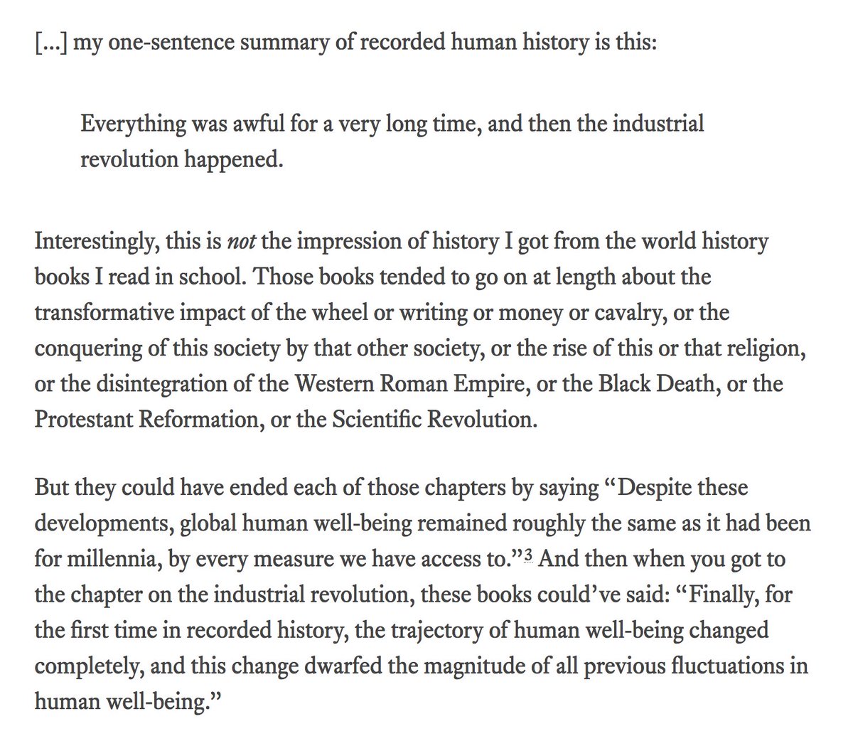 The history of human progress: @lukeprog separates the wheat (Industrial Revol'n) from the chaff (everything else) http://lukemuehlhauser.com/three-wild-speculations-from-amateur-quantitative-macrohistory/ …pic.twitter.com/T78qH6jjnH