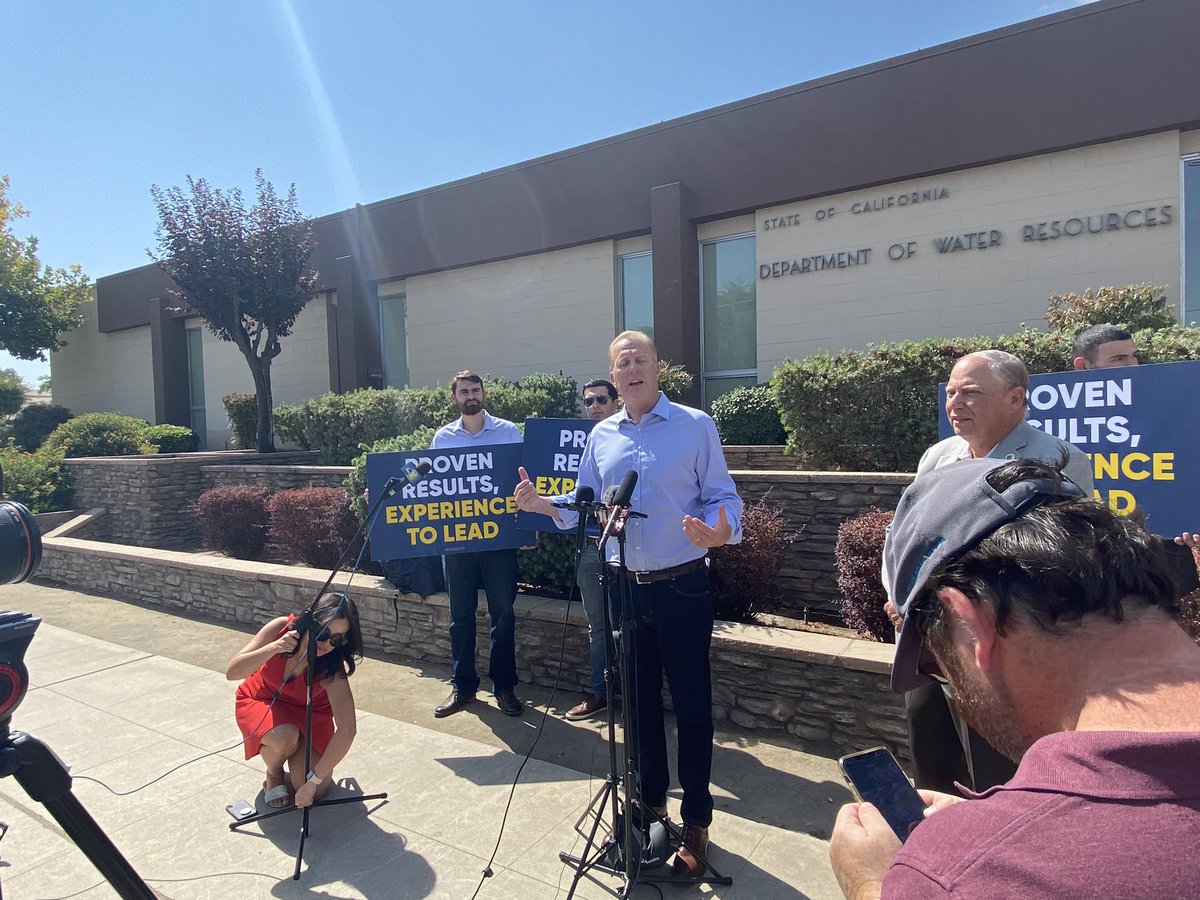 #CaliforniaRecall candidate Mayor@Kevin_Faulconer addresses media outside the California Dept. of Water Resources to discuss the state’s drought and his plan for water conservation. Notably he wants to increase water storage through new reservoirs.pic.twitter.com/UMj5QqOLZT