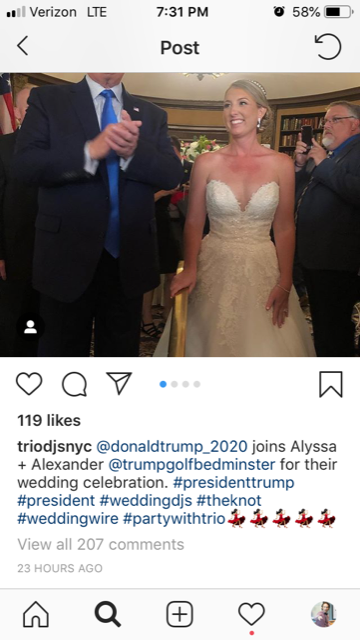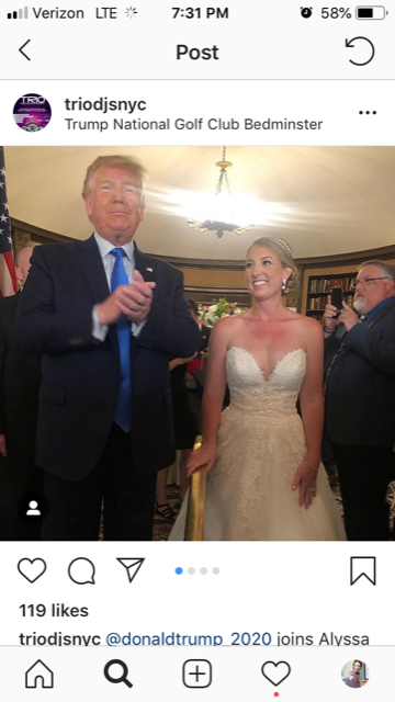 Since it was clipped from original Tweet: This picture was posted Saturday, 8/3/2019 at 8:30 PM ET. It confirms that President Trump was doing personal business, making money off of the presidency, by visiting weddings on his property, on the night of the El Paso shooting.pic.twitter.com/806asOjV1Q
