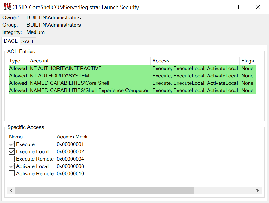 Interestingly simple bug and a good demonstration of the difficulty working out the security of a COM services. Although I'd be wrong not to plug http://oleview.net at this point as it'll show you the Launch Permissions + Integrity Level :-) https://twitter.com/thezdi/status/1208057507542949888 …pic.twitter.com/7CsHw47WaJ