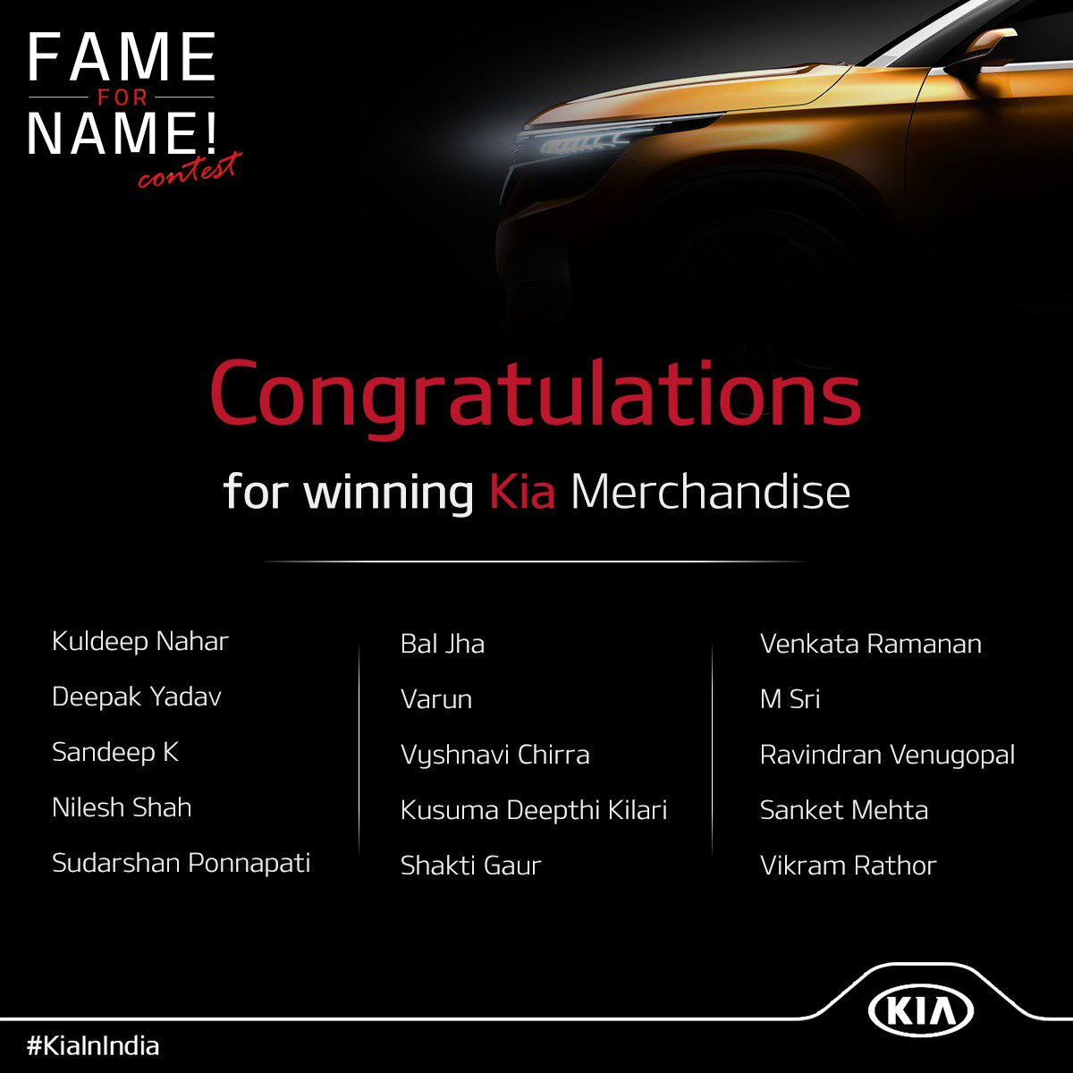 #FameForName and won the Kia Merchandise! We will shortly get in touch with you on your email id. Kindly respond to it with required details by 7th July 11:59 PM to claim your merchandise.#KiaInIndiapic.twitter.com/xUeRzR1EbC