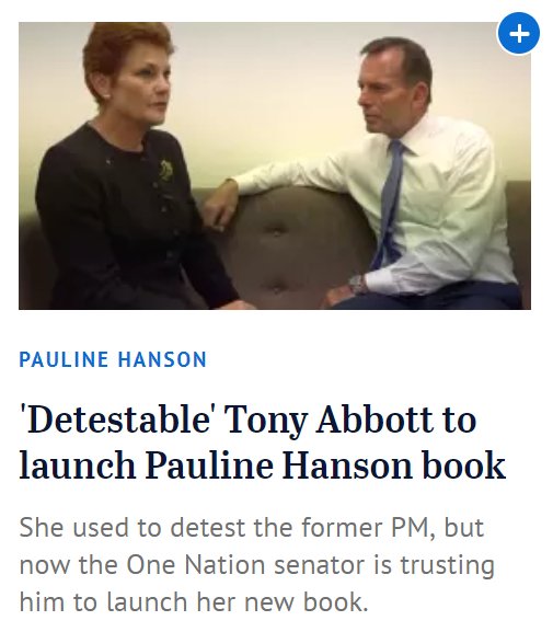 #Idiots#AusPol https://www.smh.com.au/politics/federal/detestable-tony-abbott-to-launch-pauline-hanson-book-20180326-p4z6b2.html …pic.twitter.com/mODUCLr0fy