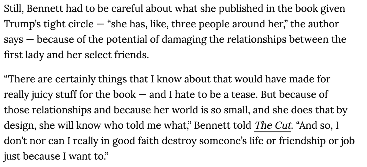 This is strange. Reporter says she doesn't want to burn her sources, but then she says there are only 3 people close to Melania Trump and implies that one or more of those 3 people told her juicy stuff about Melania that she couldn't put in her book. That's burning your sources.pic.twitter.com/PX69gJCOOH