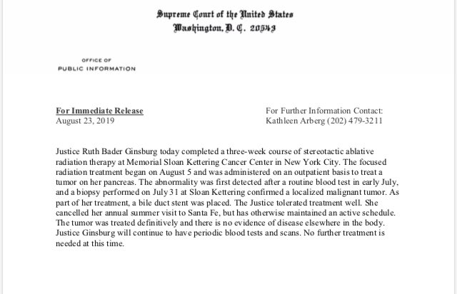 Tough time for her. All the best to RBG.