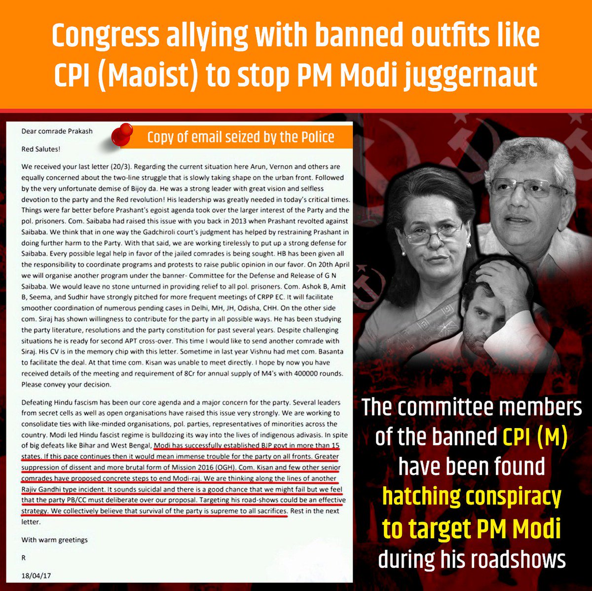 His assassination is plotted by congresses and leftist and this is no excuse about the Maoist letter found