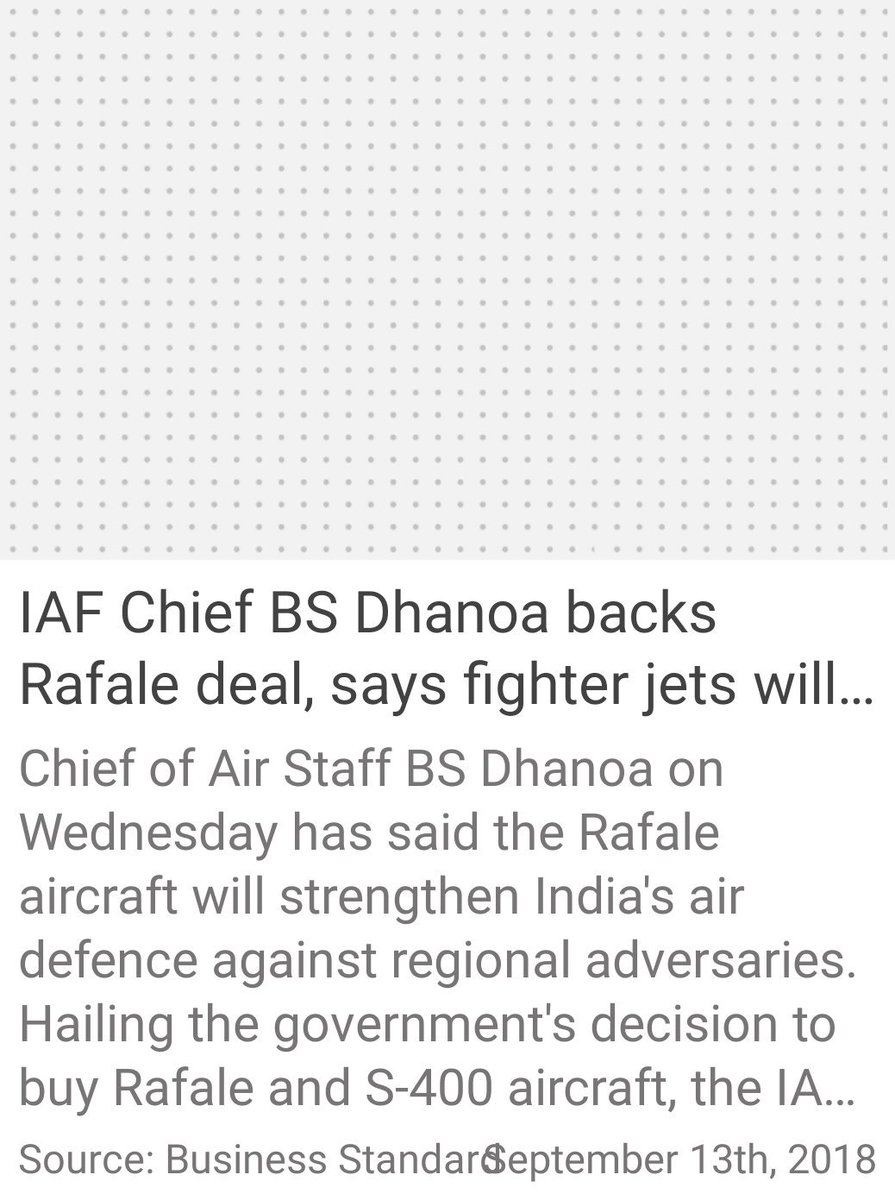 IAF Chief BS Dhanoa backs Rafale deal, says fighter jets will strengthen India's air defence https://www.businesstoday.in/current/economy-politics/iaf-chief-bs-dhanoa-backs-rafale-deal-says-fighter-jets-will-strengthen-india-air-defence/story/282279.html … via NaMo Apppic.twitter.com/kUHUE1VnCx