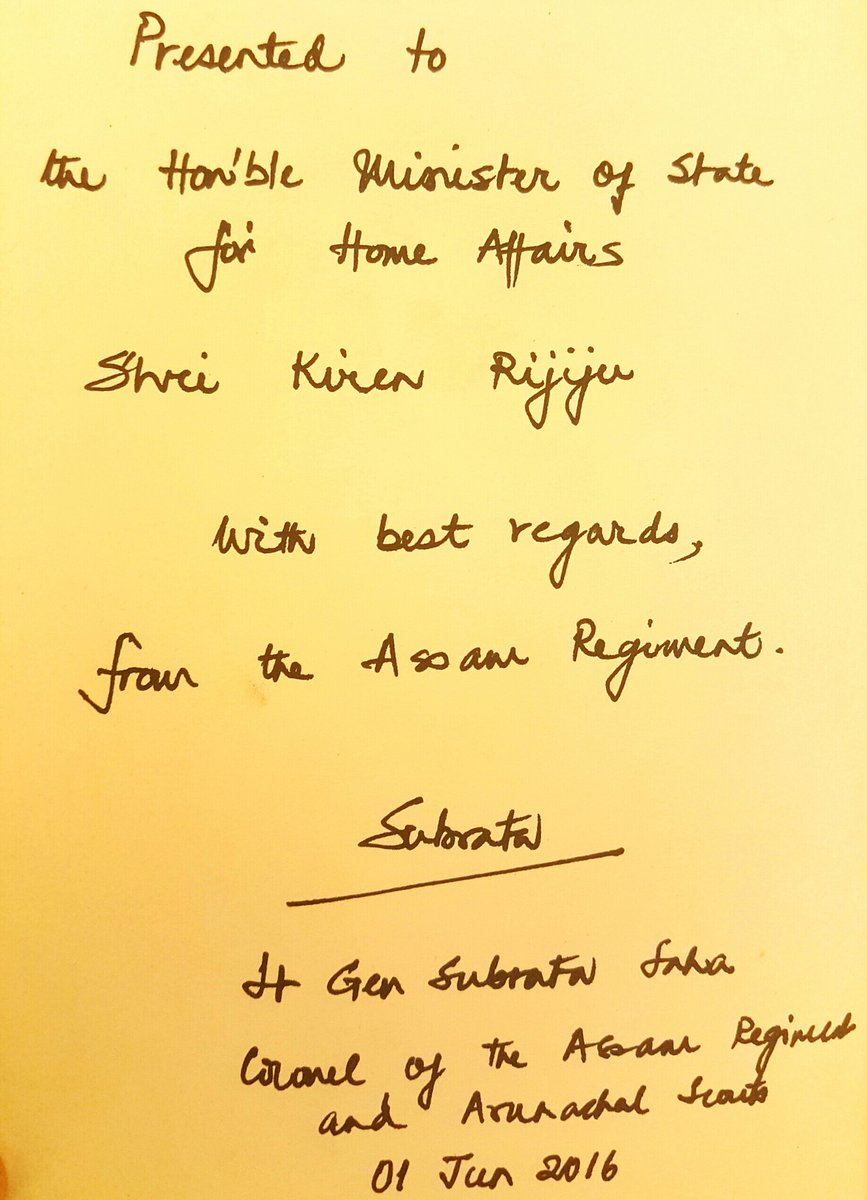 Lt Gen Subrata Saha Dy Chief of Army Head of Assam Regiment presented me original compilation book of Assam Regimentpic.twitter.com/ARADLf3w3G