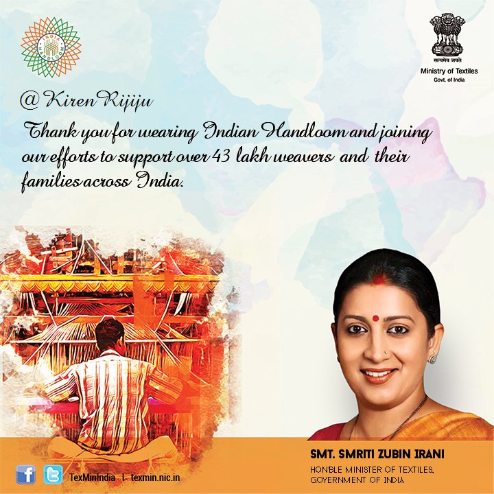 @smritiirani I wear handloom because it makes me look outstanding and truely Indian...