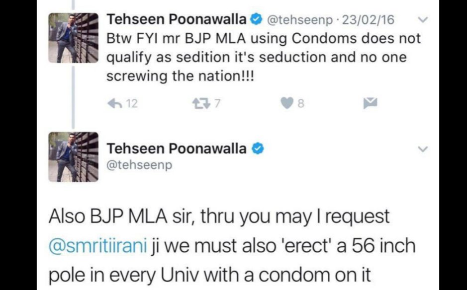 बेहद आपत्तिजनक इस भाषा से न असहिष्णुता बढ़ी न मीडिया की सुर्ख़ियां बनी, जबकि पूनावाला प्रवक्ता के अलावा वाड्रा के रिश्तेदार हैं
