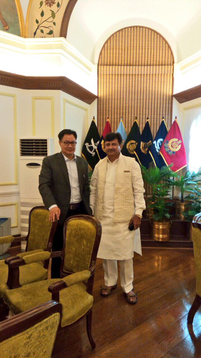 It's always pleasure to meet party colleague & Dynamic leader Shri @KirenRijiju ji. In 2004 we both were elected first time to Lok Sabha. pic.twitter.com/CrdMJOrts0