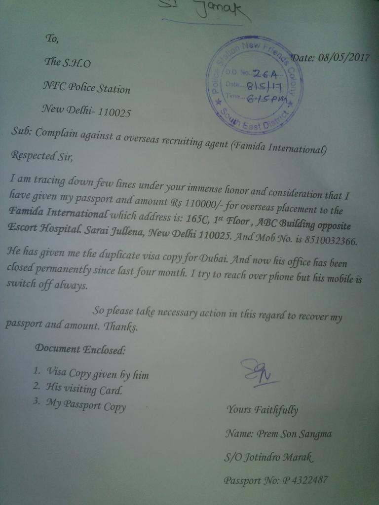 Good morning sir please kindly help me to see my compliant against fraud visa agent Delhi Police stationpic.twitter.com/wnE7m1F2qs