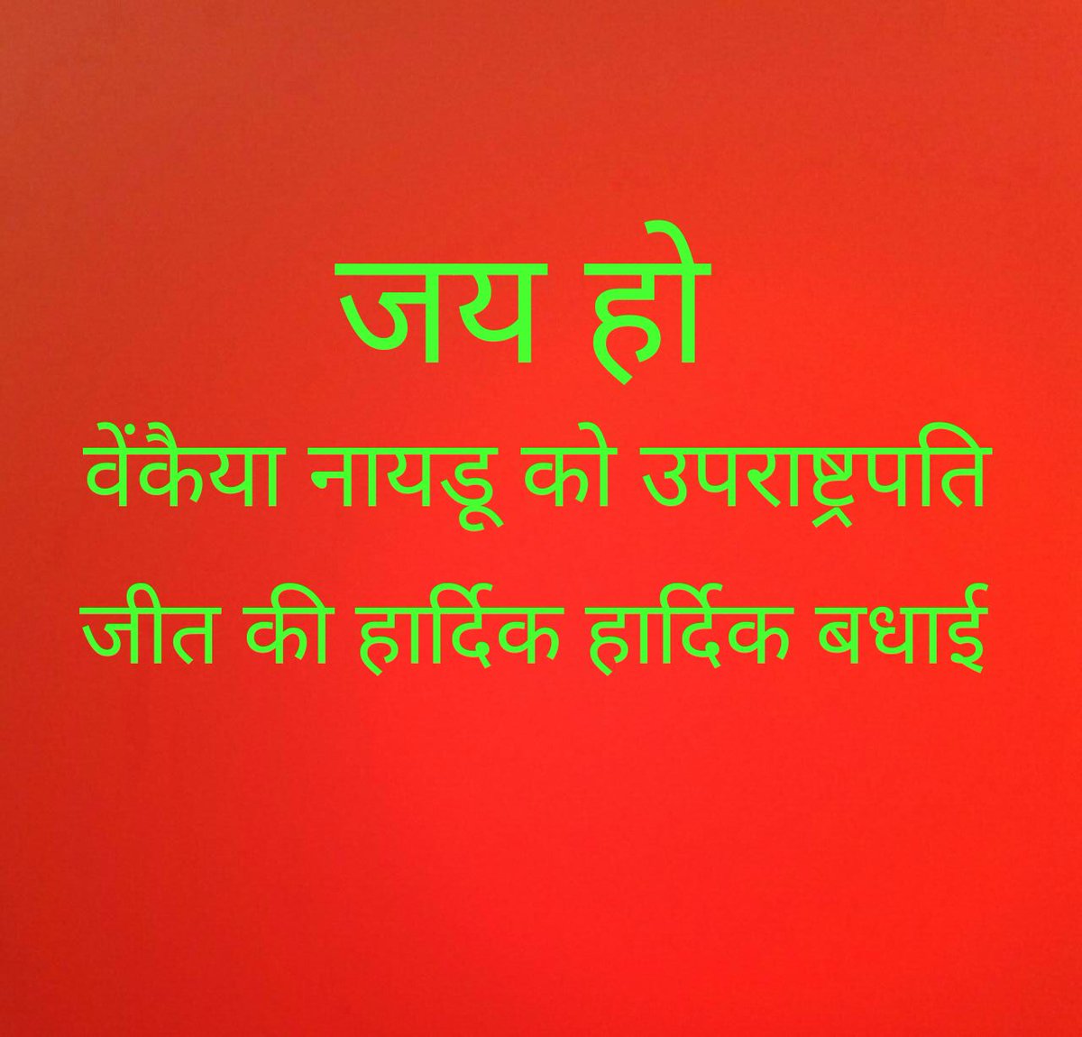 श्री वेंकैया नायडू जैसे सज्जन एवं कर्मठ व्यक्ति के उपराष्ट्रपति बनने से आज उपराष्ट्रपति पद की गरिमा और बढ़ गयी। जय हिंद। जय भारत।