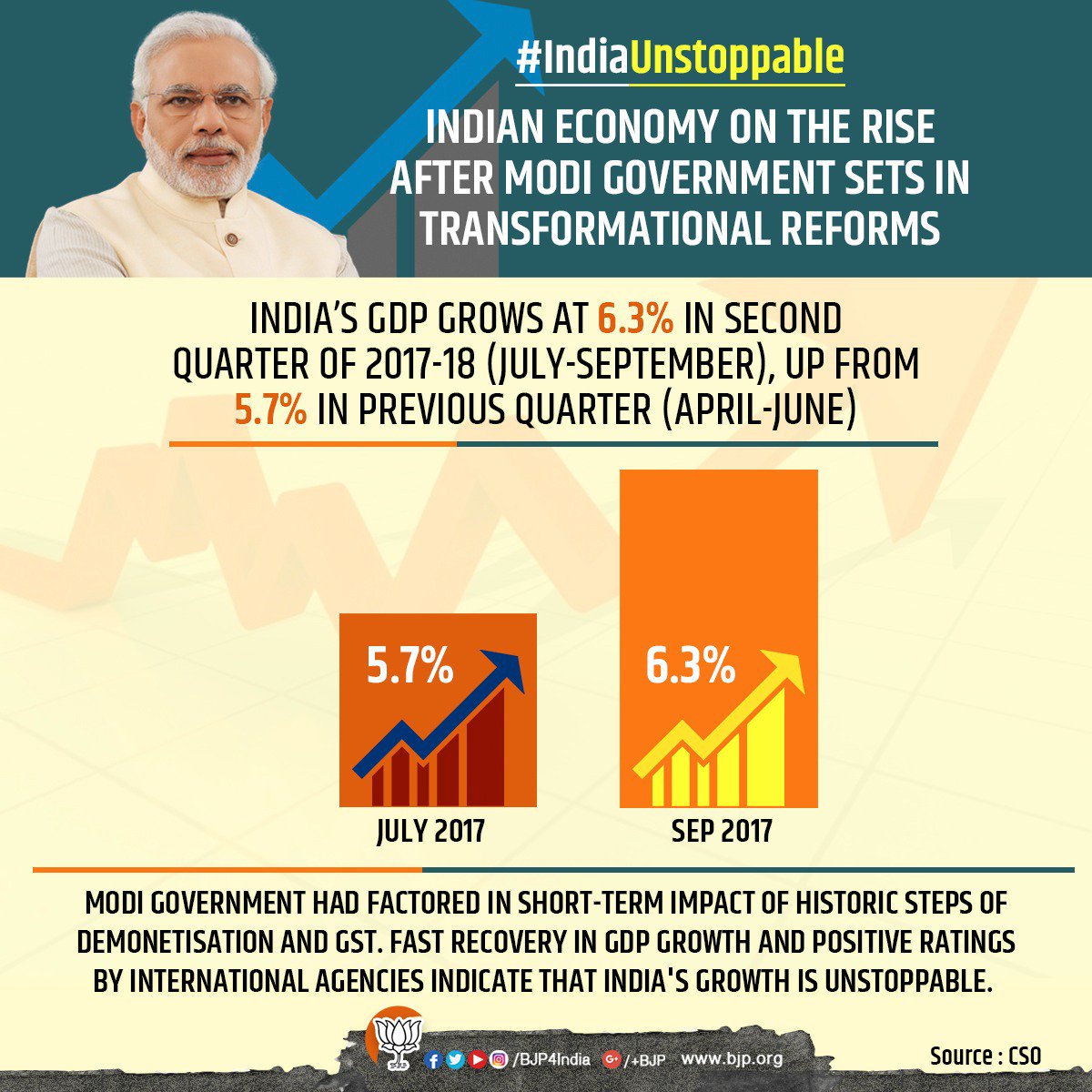 Growth story can be reversible, if tempo is lost and requires unending effort. Demonetisation and GST are two support to move ahead.
