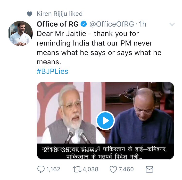 Truth is congress chose not to file a defamation case against the PM as the FM did against the Delhi CM. Politics is serious business and hence all parties will work overtime to discredit the other. Why did you like the tweet from RG was that a