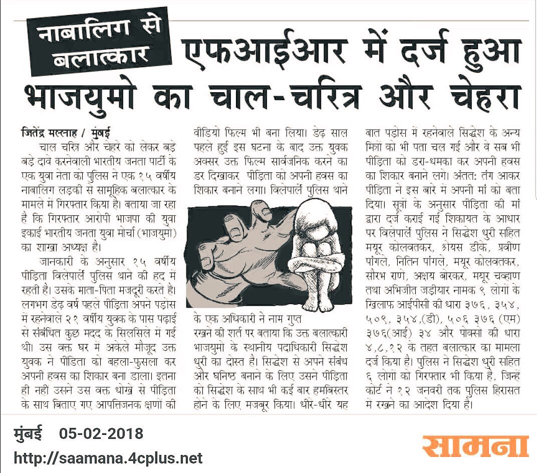 Bhartiya janta yuva morch unit president held for raping and sexually abusing a 15 year old girl. Is this
