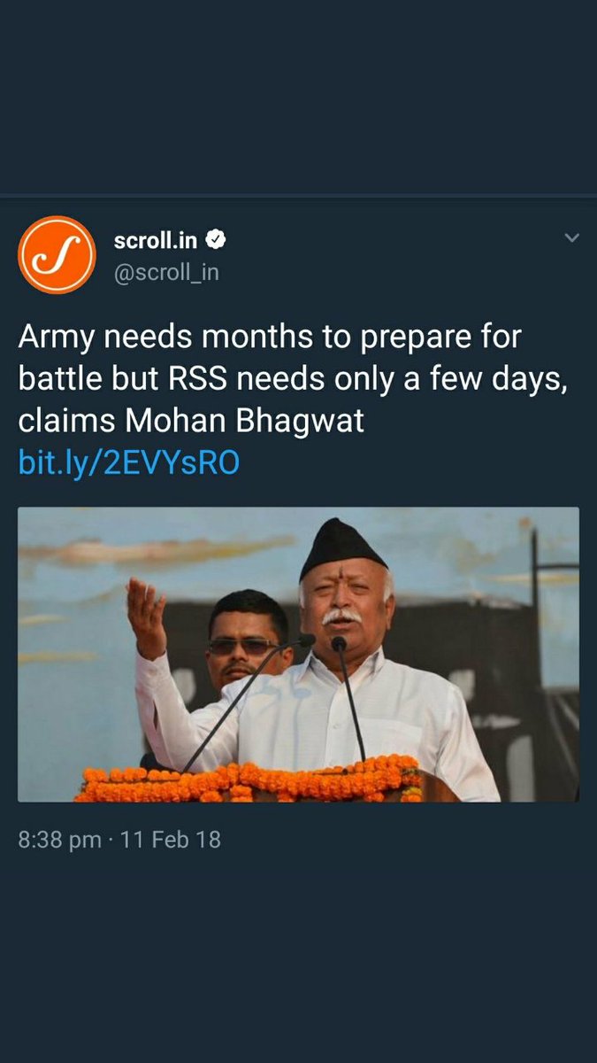 #MohanBhagwat दो दिन में सेना से भी अधिक प्रशिक्षत कर देने का दावा कर रहे हैं? सेना जैसी देशभक्ति और अनुशासन पूरे देश में किसी के पास नही#RSSINSULTSARMY#ApologiesRSS@sambitswaraj@divyaspandanapic.twitter.com/AFjyWjx2Q9