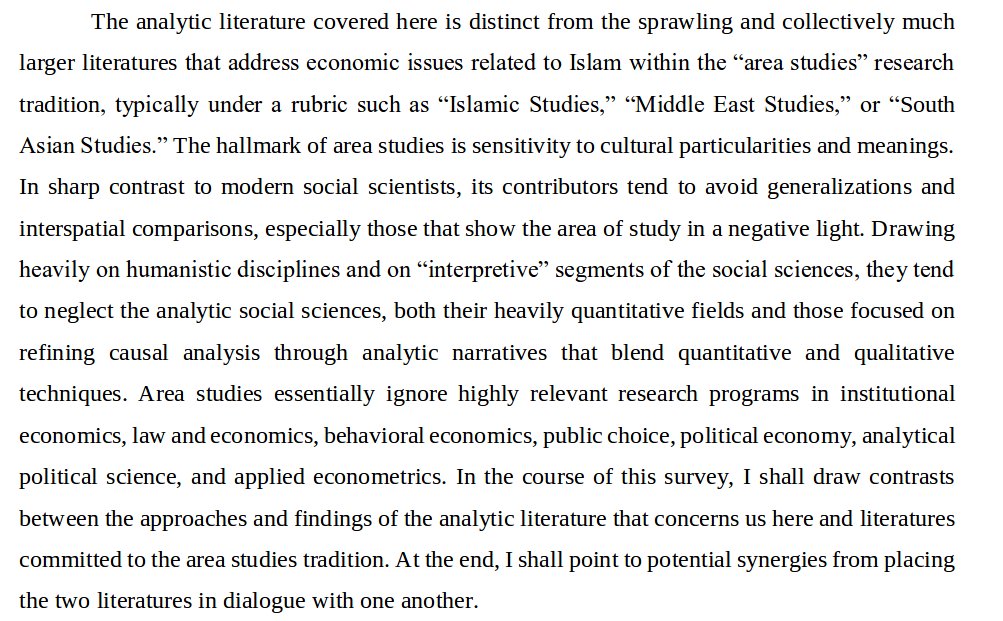 Area or cultural studies incapable of or unwilling to criticize their own topic because they nearly only attract proponents. https://sites.duke.edu/timurkuran/files/2017/09/Islam-Economic-Performance-Kuran-JEL-in-press.pdf …pic.twitter.com/yQcEyj76mm
