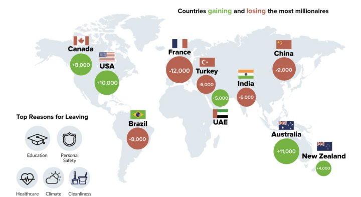 #Map shows that millionaires leave countries they perceive as politically or economically unstable in order to move to stable, rich democratic (or tightly rules autocratic) nations. Data is about 1.5 year old by now. Would love to see an update! Source: https://buff.ly/2IRMJIY pic.twitter.com/TKeq5TrloP