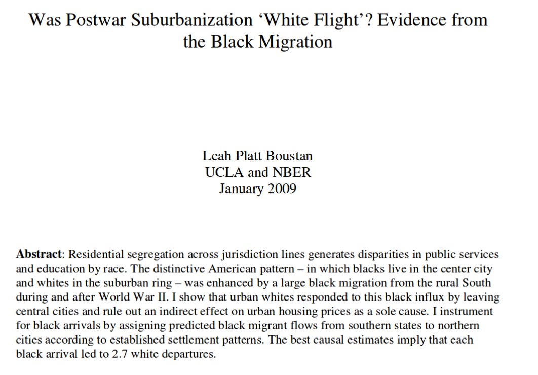 White flight as caused by blacks moving in. http://citeseerx.ist.psu.edu/viewdoc/download?doi=10.1.1.540.3762&rep=rep1&type=pdf …pic.twitter.com/QDAxH5EkwV