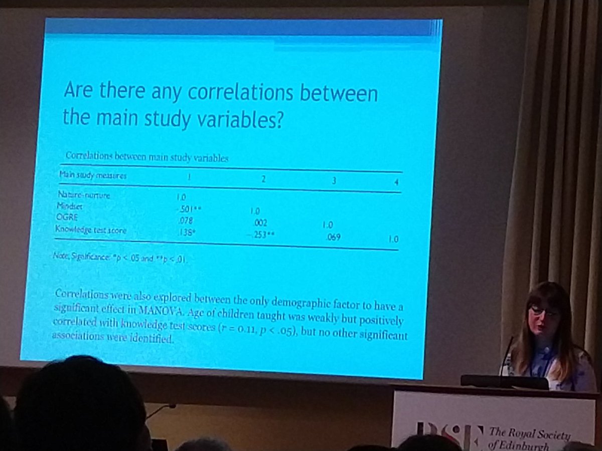 Teacher psychology and genetics knowledge. Notice knowledge is negatively related to belief in growth mindset. http://programme.exordo.com/isir2018/delegates/presentation/40/ … #ISIR2018pic.twitter.com/od8pcEwz8b