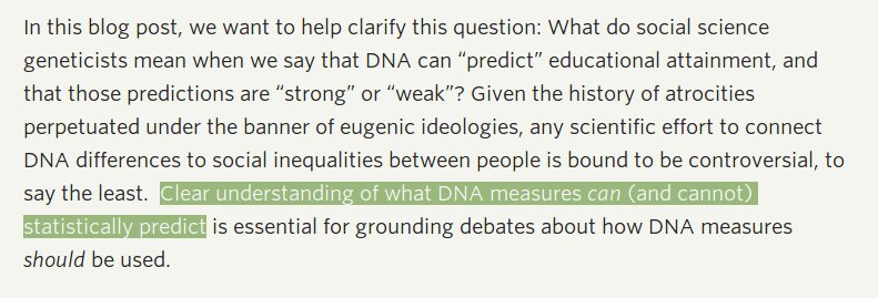 Harden & Belsky appear to conflate current mediocre predictive validity of polygenic scores with the future ones. Then argue that because the current ones are not so useful for individuals, future ones will be too. Airplanes are impossible type argument. https://bold.expert/predicting-education-from-dna/ …pic.twitter.com/NS4QkUQRvc