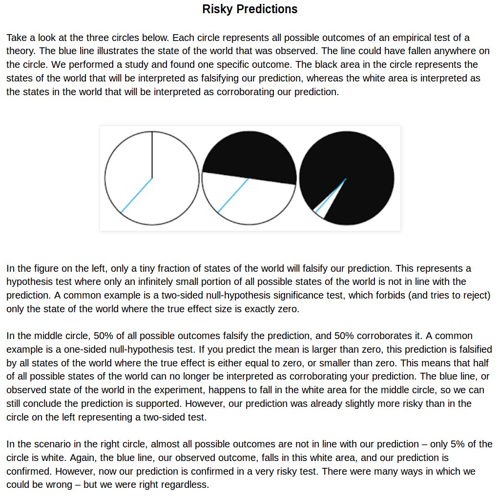 Most social science is at the level of the middle circle -- satisfied with merely directional predictions of effect sizes. Very weak! Fast progress in science requires bold predictions tested in highly informative datasets. http://daniellakens.blogspot.com/2018/07/strong-versus-weak-hypothesis-tests.html …pic.twitter.com/NwxH7ZHlLJ