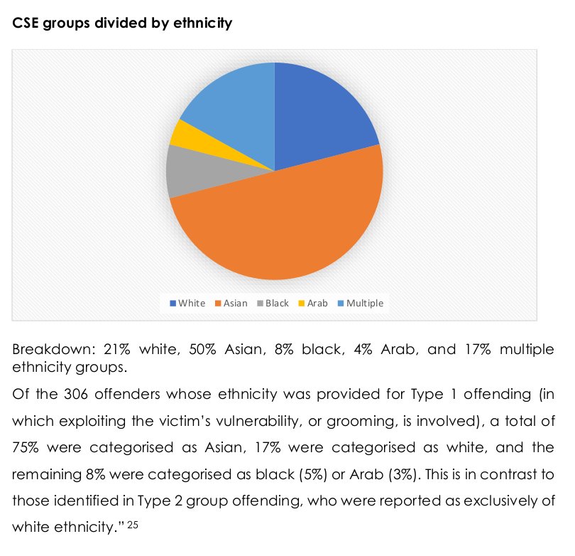 UK grooming perpetrator origins from a recent report. Fairly useless "Asian" category which probably doesn't contain a lot of Chinese and contains a lot of people that aren't genetically Asian (mostly Pakistanis). https://www.quilliaminternational.com/shop/e-publications/group-based-child-sexual-exploitation-dissecting-grooming-gangs/ …pic.twitter.com/6YePAYuh3K
