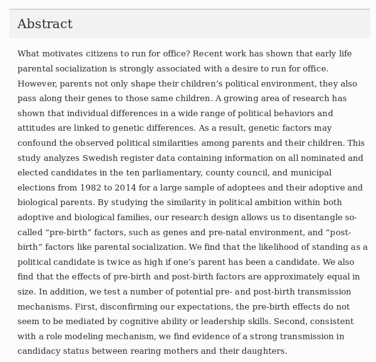 I was surprised by the lack of IQ mediation. But I guess I was thinking of national-level politicians when I thought of 'politicians', and not 'county council, and municipal' ones.