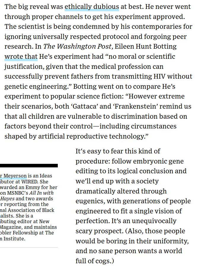 Obvious straw man is obvious. With consumer eugenics, parents will generally choose good health and optimize a variety of other things without any central vision. This is likely to promote physical diversity, maybe even speciation in our species. https://www.wired.com/story/crispr-babies-ivf-and-the-ethics-of-genetic-class-warfare/ …pic.twitter.com/l6t4NRKwKw