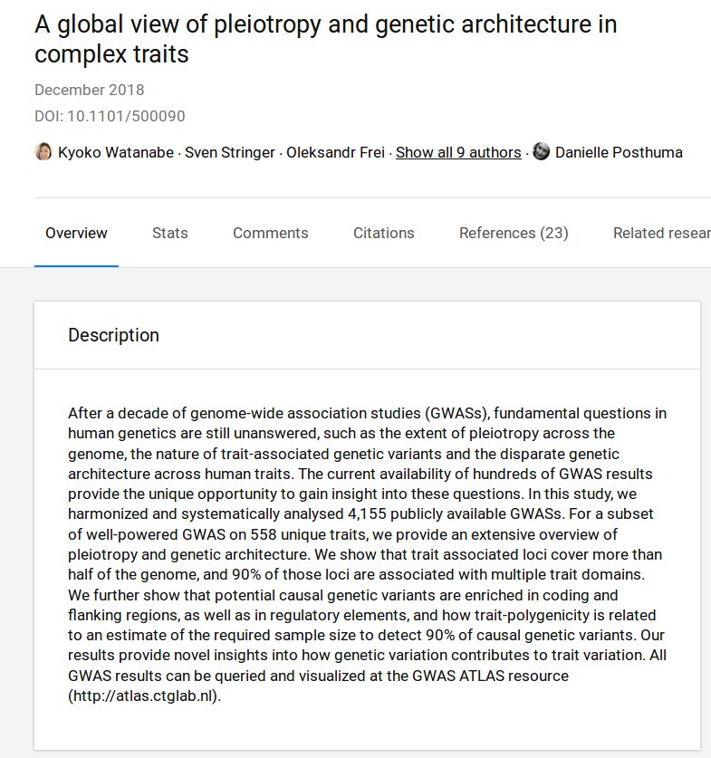 An important take-away of these multi-trait genomics efforts is that we will have a very good idea of what traits we get when we select for trait X in embryo selection-like scenario. These things are not a mystery, just an engineering challenge. https://www.researchgate.net/publication/329805017_A_global_view_of_pleiotropy_and_genetic_architecture_in_complex_traits …pic.twitter.com/GphG7gq6Io